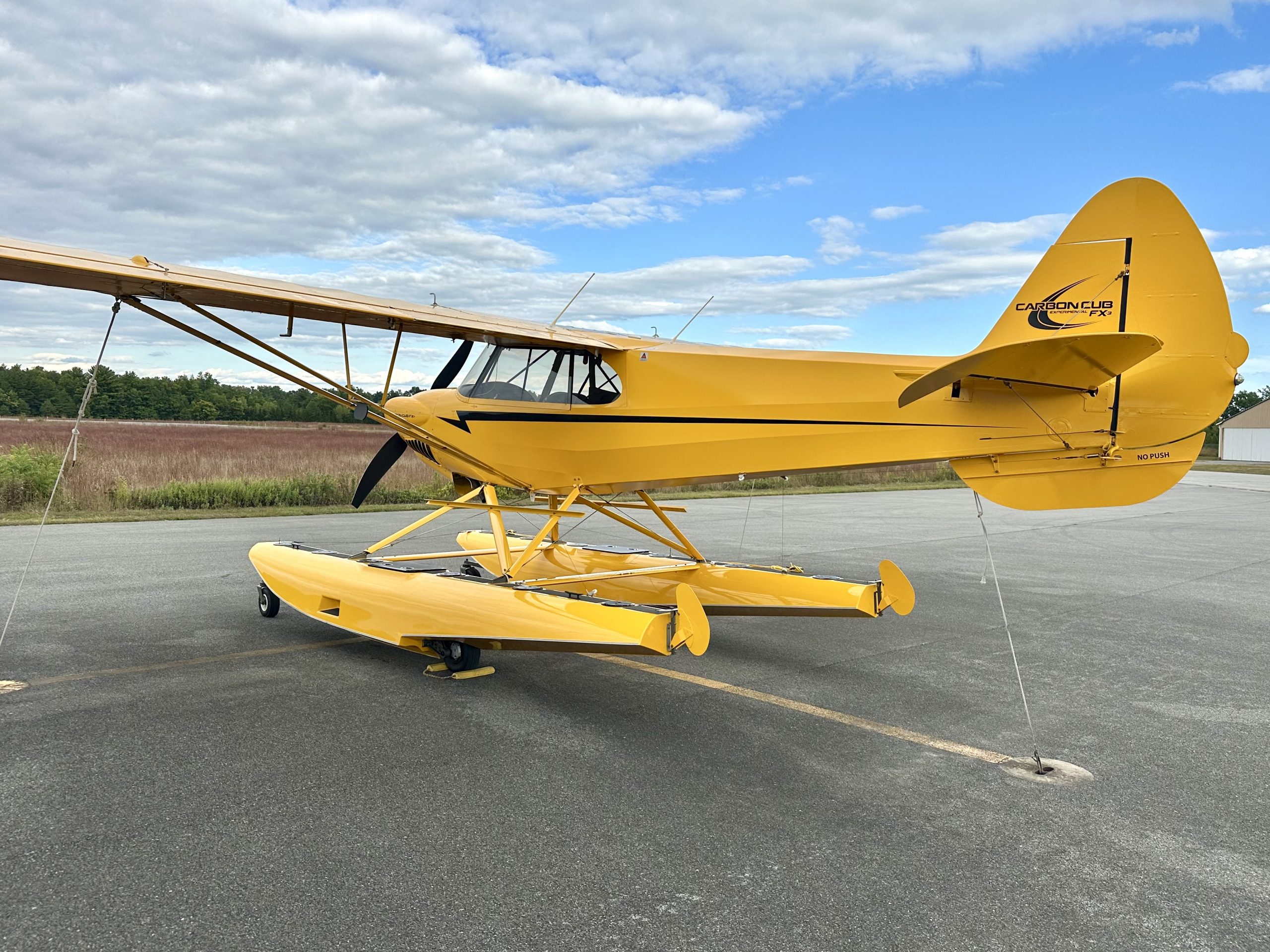 This beautifully maintained FX3 is finished in classic cub yellow and equipped with Claymar 2180 composite amphibious floats. Powered by the reliable Lycoming 363i (186 HP) with Lightspeed electronic ignition and an upgraded 83″ Hartzell Trailblazer prop, it delivers outstanding performance on the water and in the backcountry. Currently on floats, but comes with conventional gear.