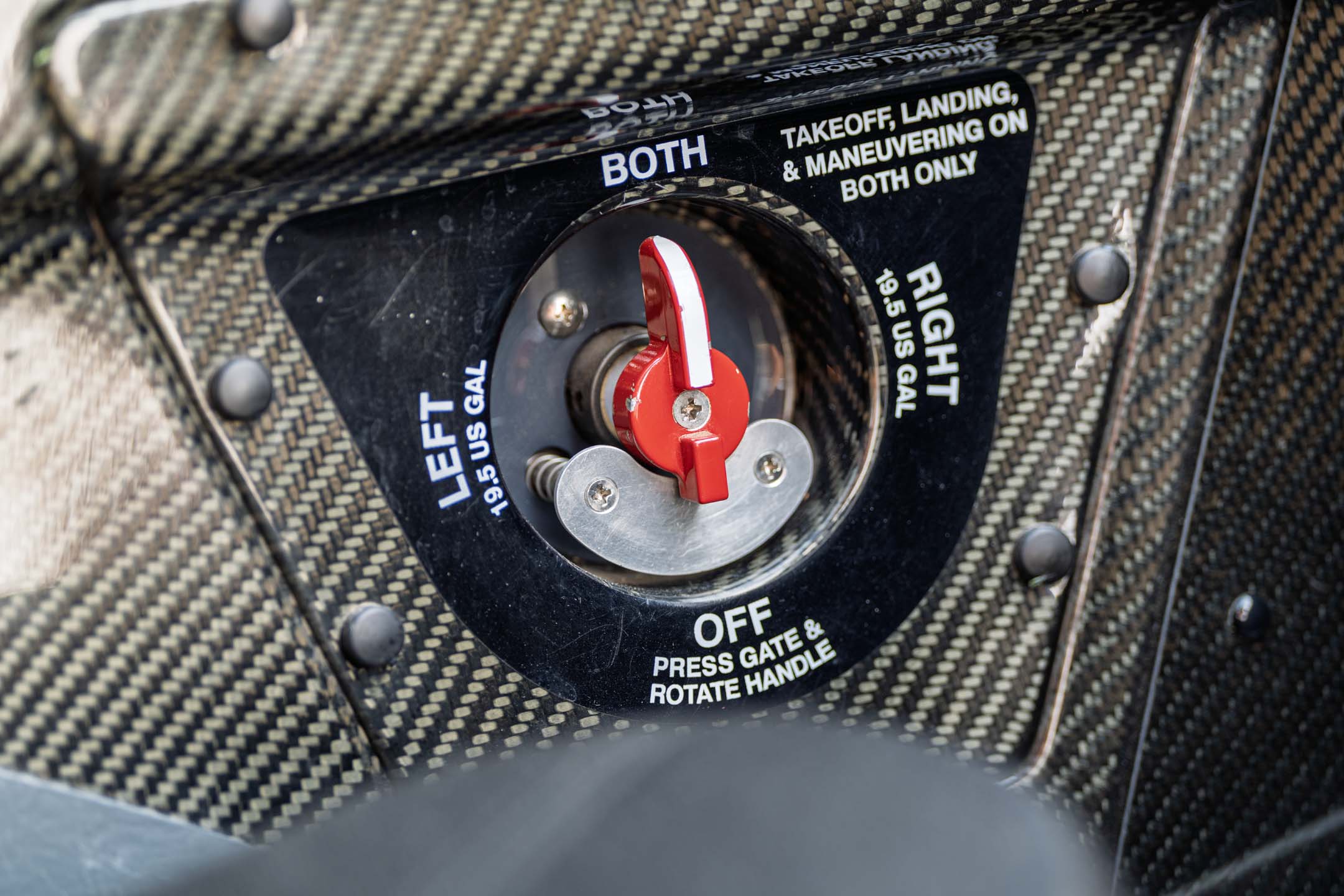 • Fuel selector valve (Left, Right, Off, & Both)
